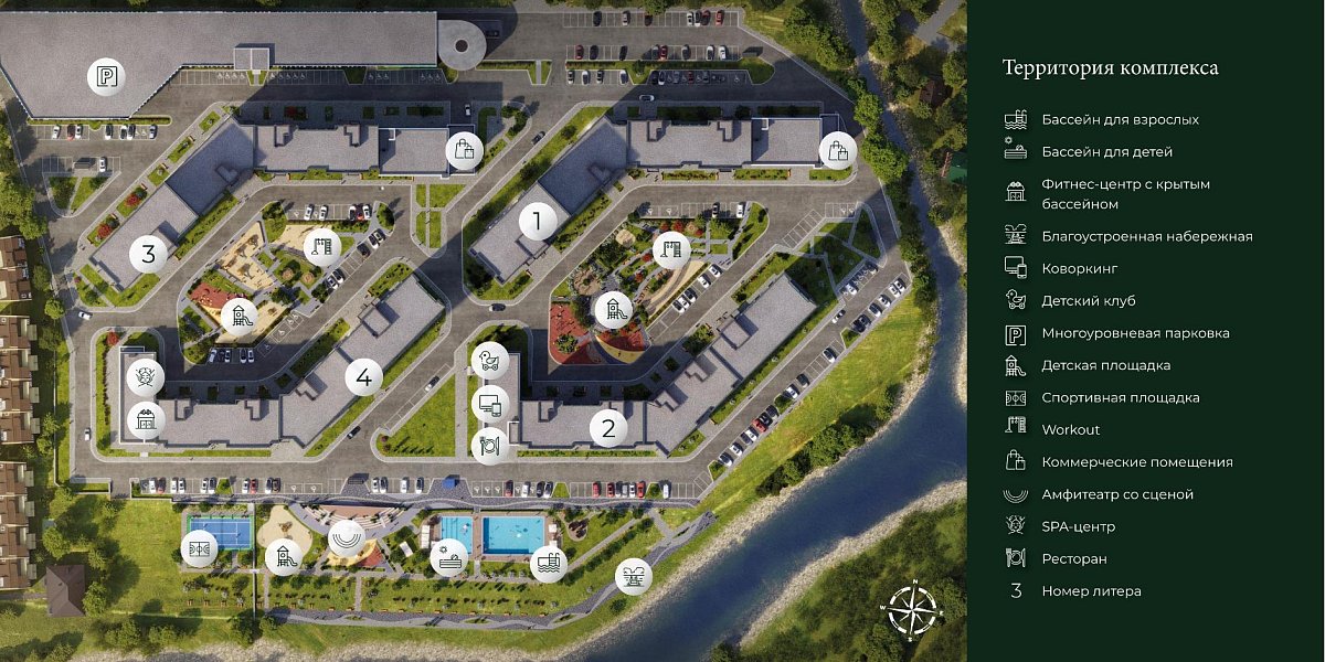 Жилой комплекс расположен на побережье Черного моря. Он сочетает в себе спокойную атмосферу и в то же время приватность. Данный жилой комплекс создан для комфортного отдыха с детьми всей семьей и проживания в окружении гор для тех, кто стремится к покою и уединению. Приятный мягкий климат позволяет отдыхать круглый год. Чистый горный воздух хвойного леса и чистое открытое море делают это место уникальным.