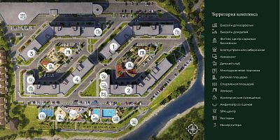 Комплекс расположен на закрытой охраняемой территории, площадью 5.5 Га.